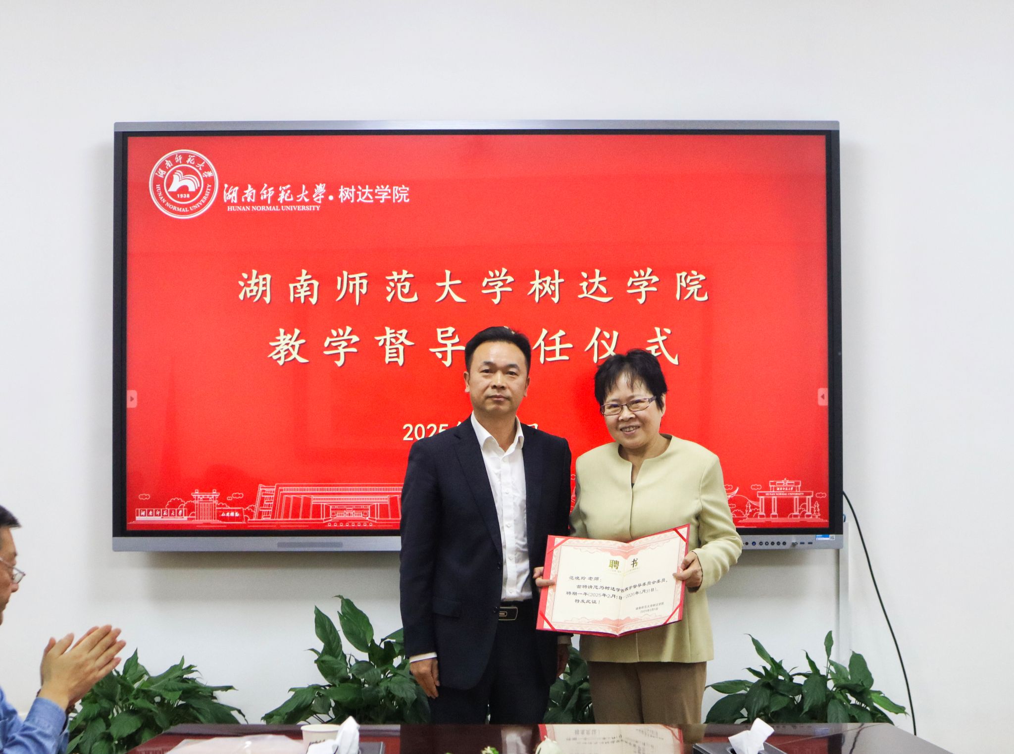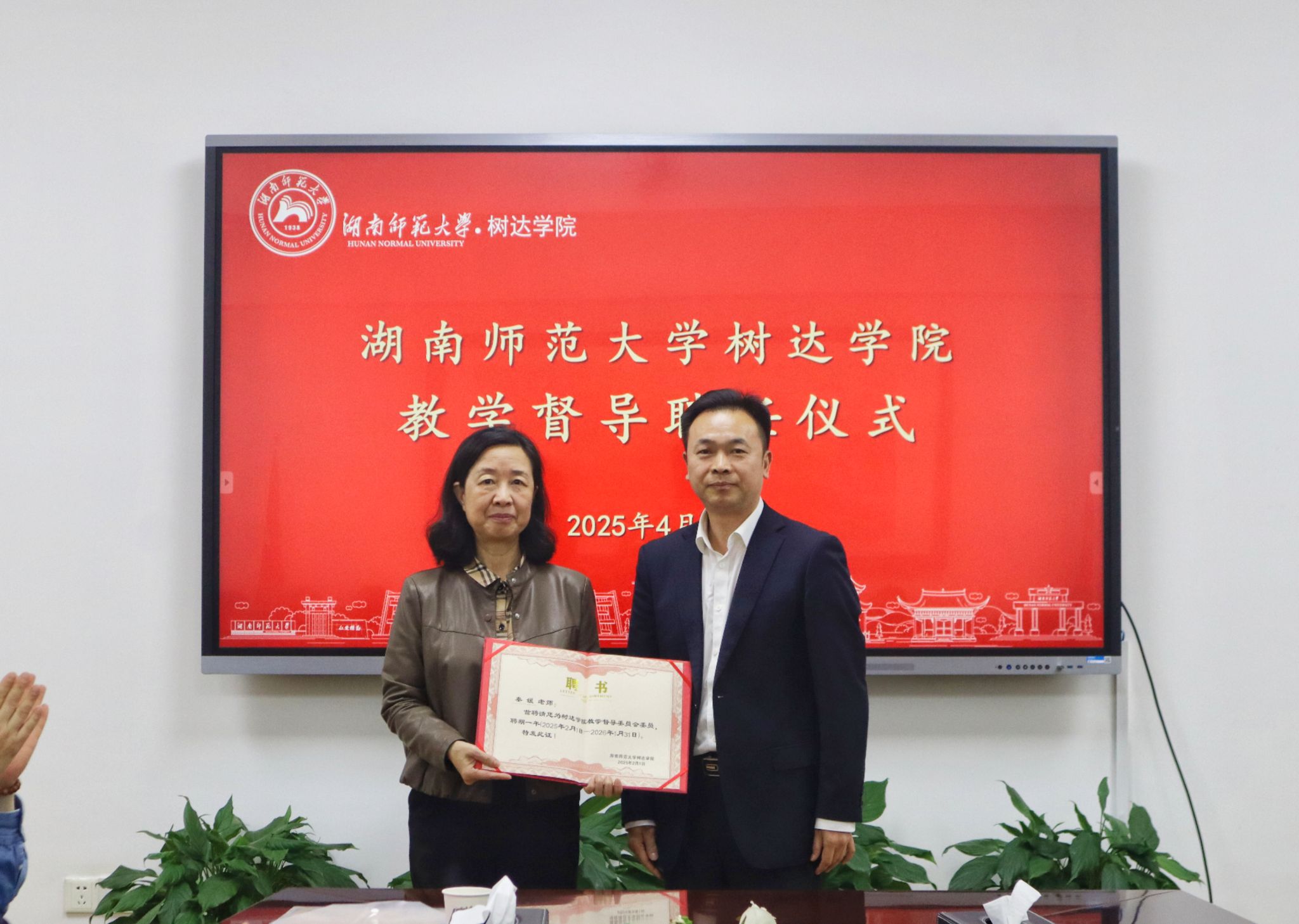 向坚持依次为受聘督导范晓玲、秦媛颁发聘任证书。