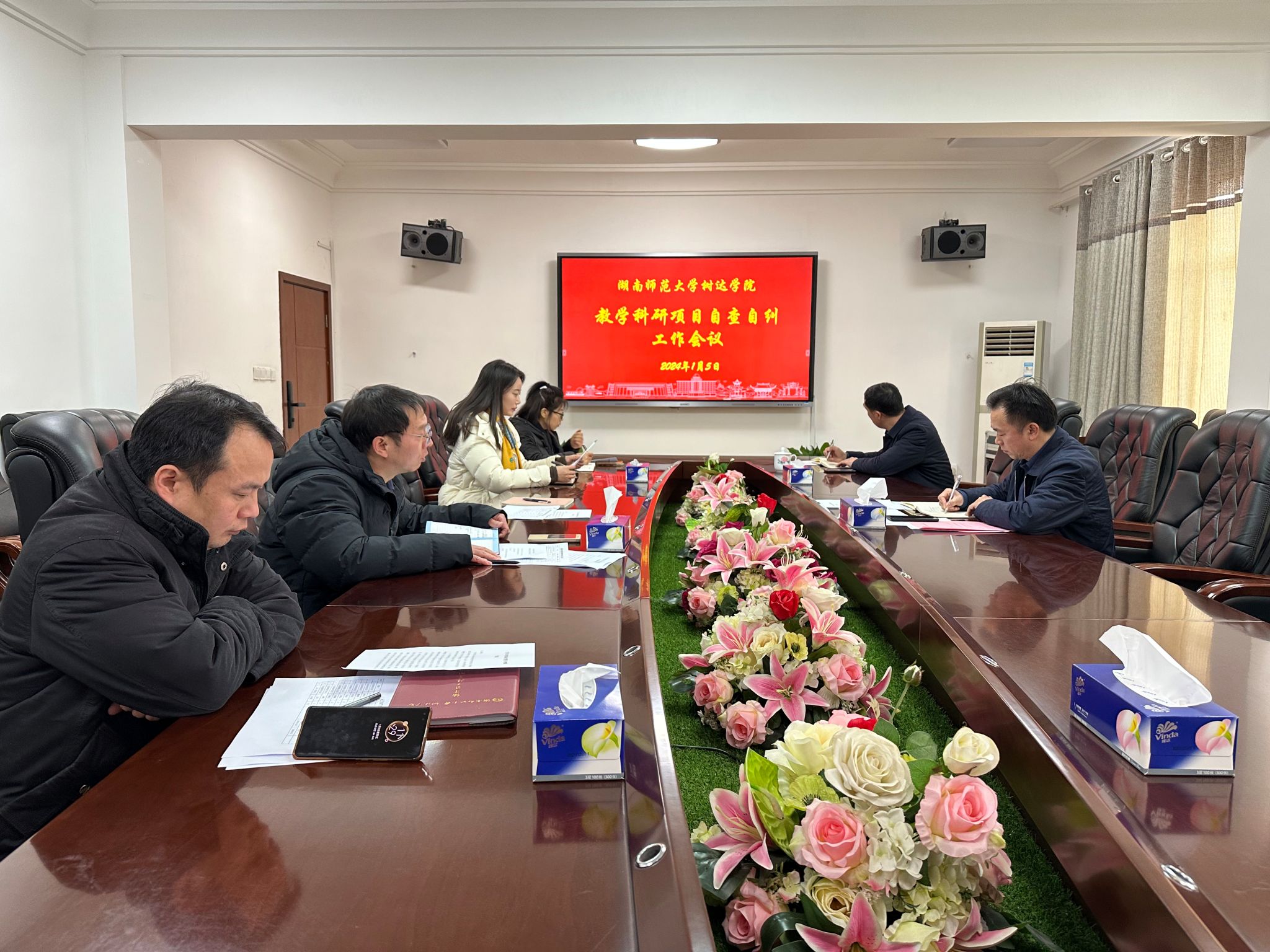 (通讯员 易芳)根据学校“审计专项警示教育大会”工作要求,1月5日上午,威廉希尔中文网站平台在302会议室召开教研科研项目自查自纠工作会议。院长向坚持、党委副书记赵鑫海、副院长朱兴中出席会议。会议由副院长黄元国主持。