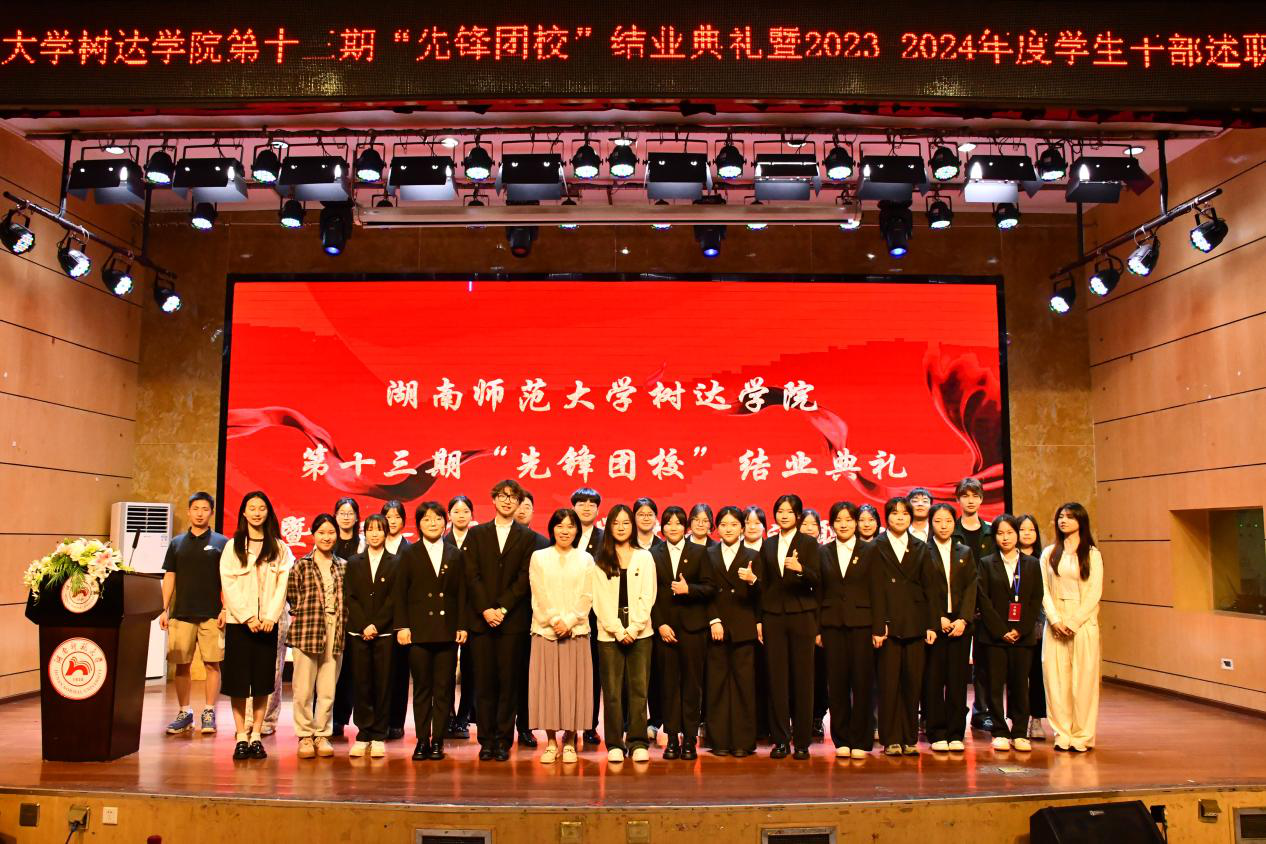 胡蓉作总结发言。她表示,此次结业典礼暨述职大会不仅展示了先锋团校的工作成果,还体现了各机构部门的工作风采,展现了学生干部严谨务实的精神。她希望,大家在平时的学习生活中,要以平和的心态面对挑战和机遇,望远山而行。切实担负新时代赋予的使命,发扬蹈厉、豪情满怀,以“闯”开路、以“创”加速、以“干”成事,凝心聚力,努力把树达学院建设得更加美好。