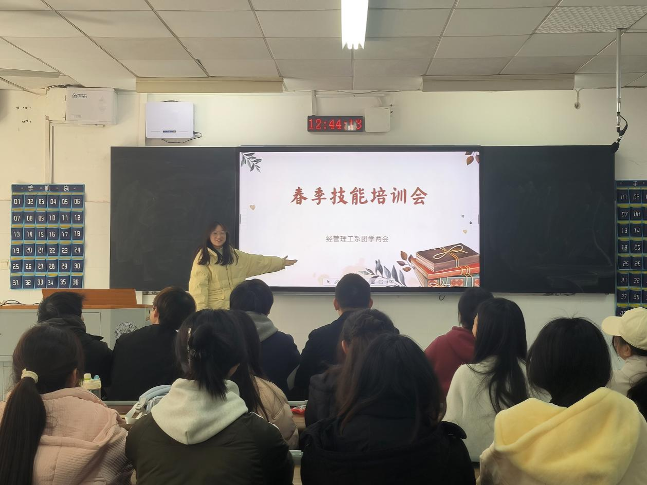 (通讯员 周文静 刘媛媛)3月18日中午,威廉希尔中文网站平台经管系、理工系团学两会在树达楼107教室召开春季技能培训会。会议由学生会办公室成员汤晨依主持。