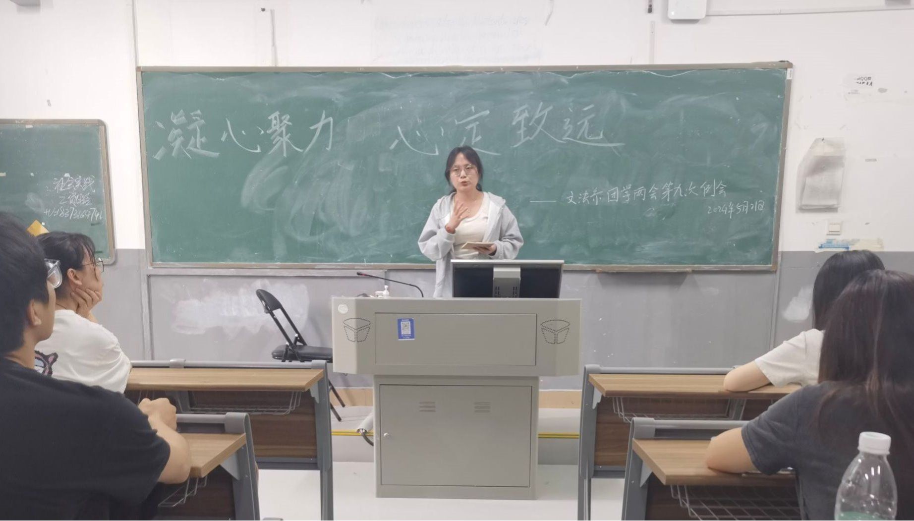 (记者 刘婉婷 尹诗茵 辜慧敏)5月21日中午,威廉希尔中文网站平台文法系团学两会在树达楼503教室召开以“凝心聚力,心定致远”为主题的第九次例会。会议由文法系学生会学业发展部成员刘敏主持。