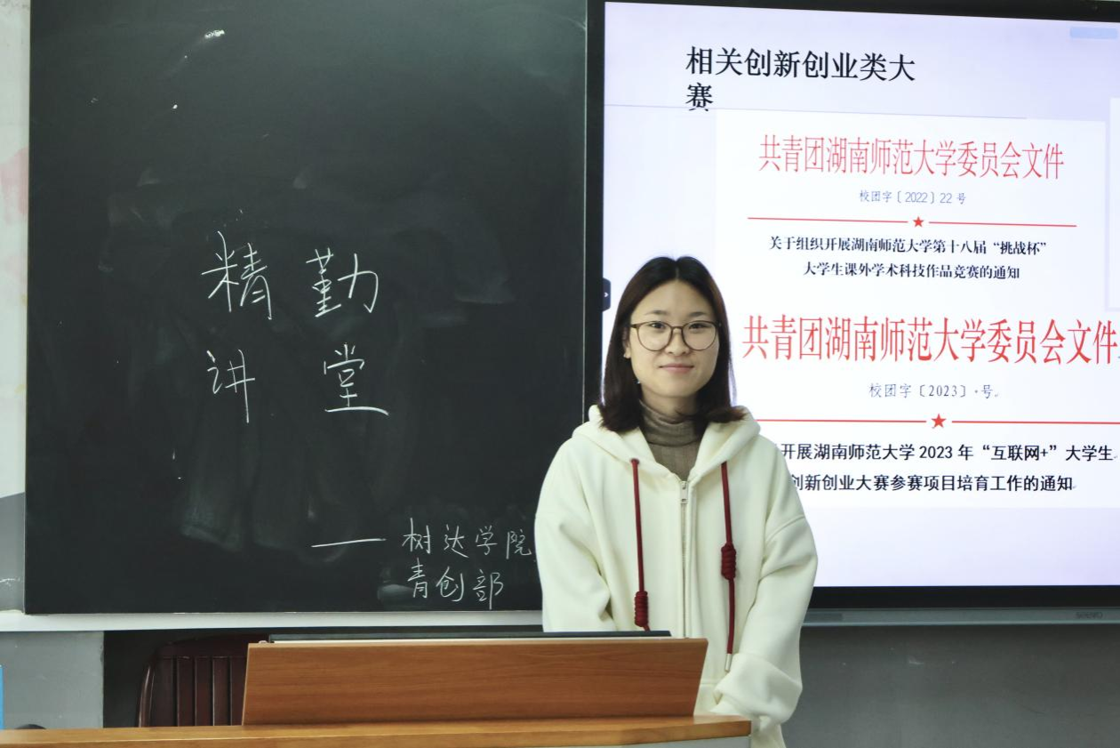 (记者 刘紫琼 陈锦红 周劲翔)2月27日中午,威廉希尔中文网站平台团委青年创新创业指导部在树达楼115教室开展以“创无限可能,践社会担当梦”为主题的精勤讲堂活动。2021级电子信息科学与技术专业易雨担任主讲人。