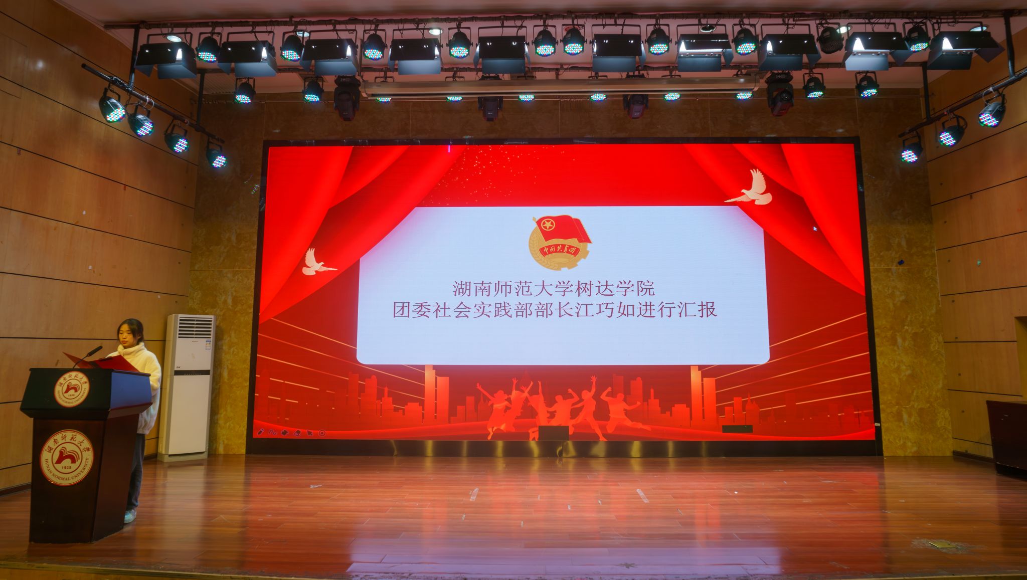 院团委社会实践部部长江巧如汇报学院2024年暑期社会活动的开展情况。