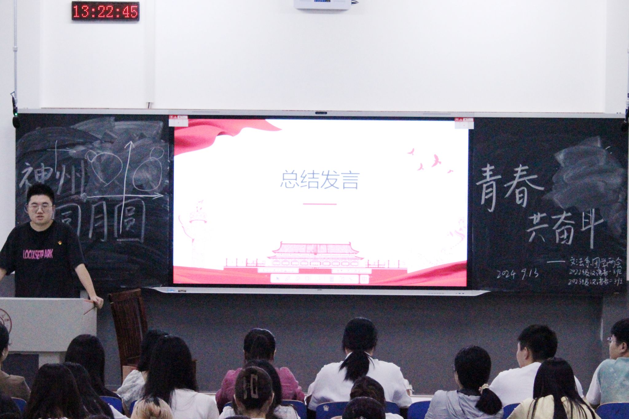 (通讯员 康世强 刘婉婷 周劲翔)9月13日中午,威廉希尔中文网站平台文法系团学两会与2022级汉语言文学专业一班、2023级汉语言文学专业二班在树达楼515教室开展以“神州同月圆,青春共奋斗”为主题的团日活动宣讲会。