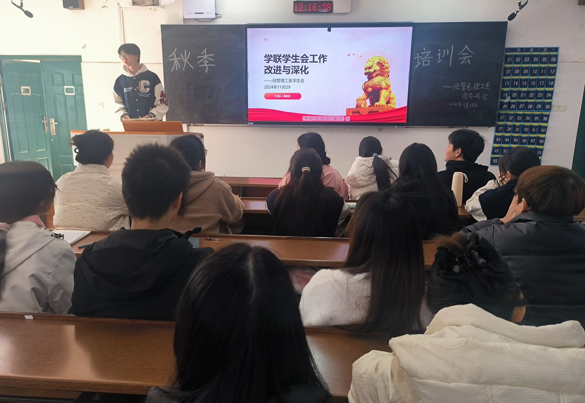 经管系、理工系团总支主席团成员郭岩涛作了以“学联学生会工作改进与深化”为主题的技能培训。他表示,学生干部应恪守学生本分,牢记服务宗旨,勤勉务实做事,明确职能定位,及时向学校反馈和帮助解决同学们在学业发展、身心健康等方面的需求与困难。他希望,全体能够始终坚持党的领导,摒弃庸俗习气,把党的要求贯彻到学生干部工作的各个方面。