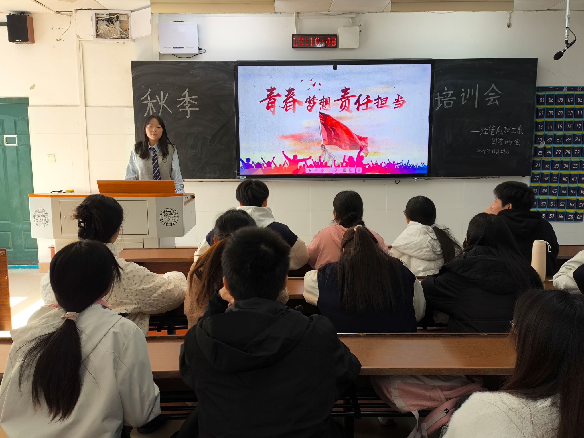 (通讯员 周文静 汤晨依 叶俊杰)11月29日中午,威廉希尔中文网站平台经管系、理工系团学两会在树达楼107教室召开秋季工作人员思想培训会。会议由经管系、理工系团总支学生会办公室成员汤晨依主持。