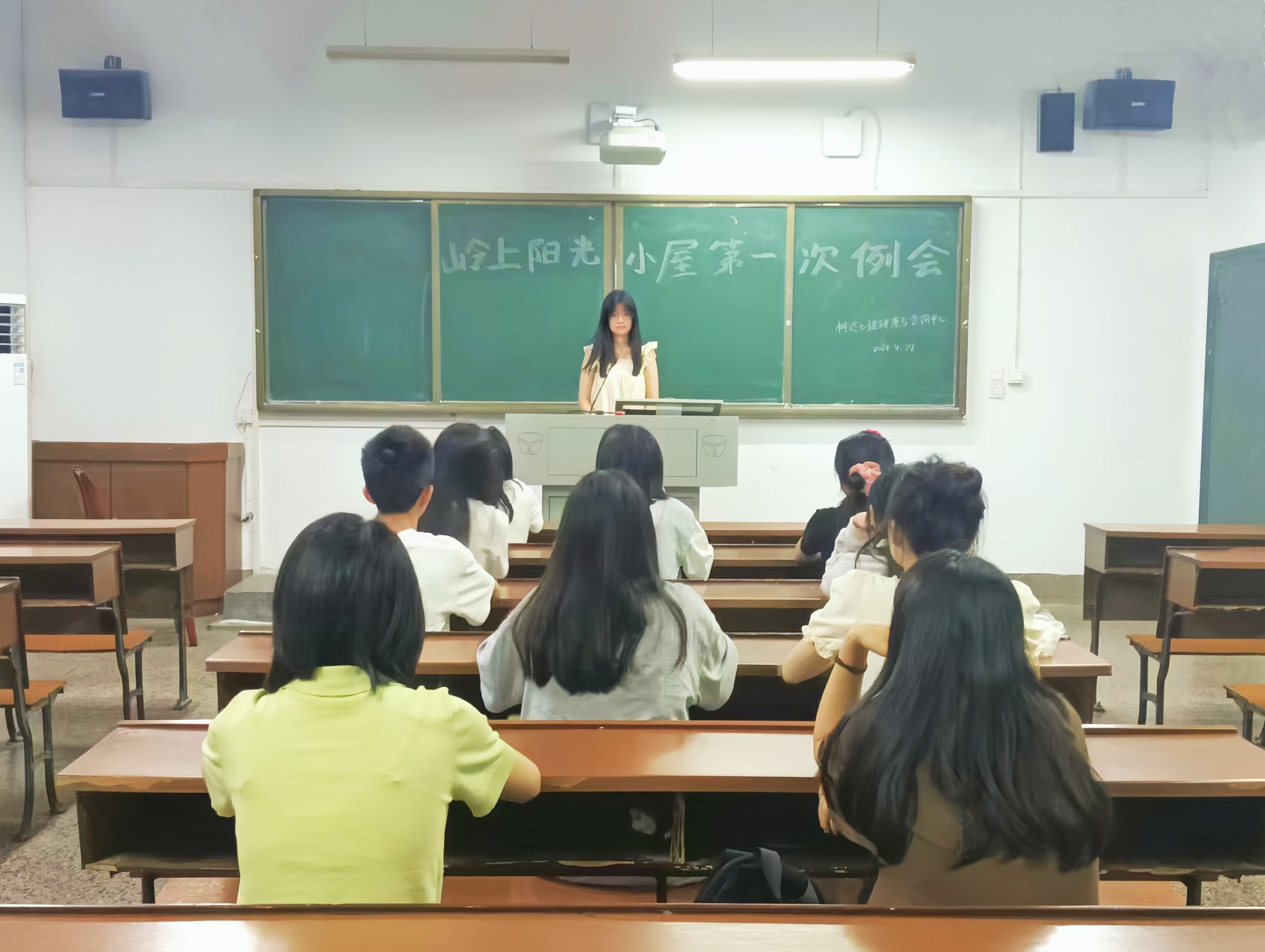 (记者 彭小敏 廖梦琪 唐奔红 ) 4月28日晚上,威廉希尔中文网站平台岭上阳光小屋在张公岭校区教学楼101教室召开第一次例会。会议由岭上阳光小屋宣传组组长廖梦琪主持。