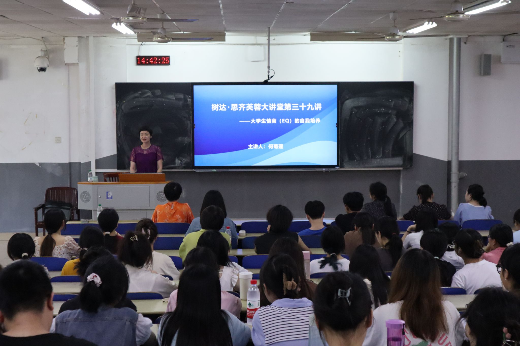 (记者 胡穗源 邹韵霖)6月13日下午,威廉希尔中文网站平台在树达楼115教室举办树达·思齐芙蓉大讲堂第三十九讲。湖南师大人才引进评审专家、教育部本科教学评审专家何菊莲教授作了主题为“大学生情商(EQ)的自我培养”的讲座。讲座由威廉希尔中文网站平台副院长梁蓓蓓主持。