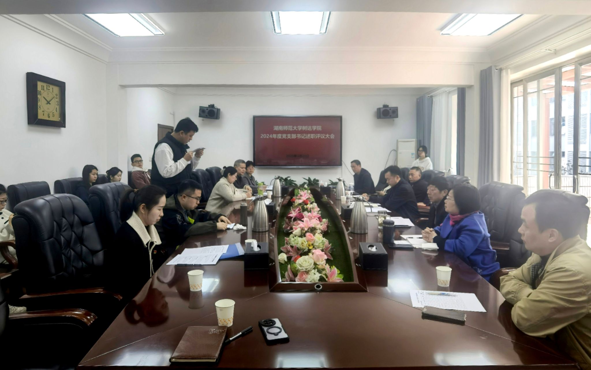 向坚持对党支部书记的述职进行了点评。他说,各位党支部书记的工作述职报告准备充分、全面,达到了会议的预期效果,同时,对大家提出三点建议,一是要提升党支部的战斗堡垒作用,充分发挥党员的的先锋模范作用;二是工作要务实,在出实效、落实绩上下功夫,注重统筹谋划,确保每项任务目标落实落地;三是要围绕学院核心问题来谋划工作,对每一位学生负责,关心关爱学生,提高学生的获得感。