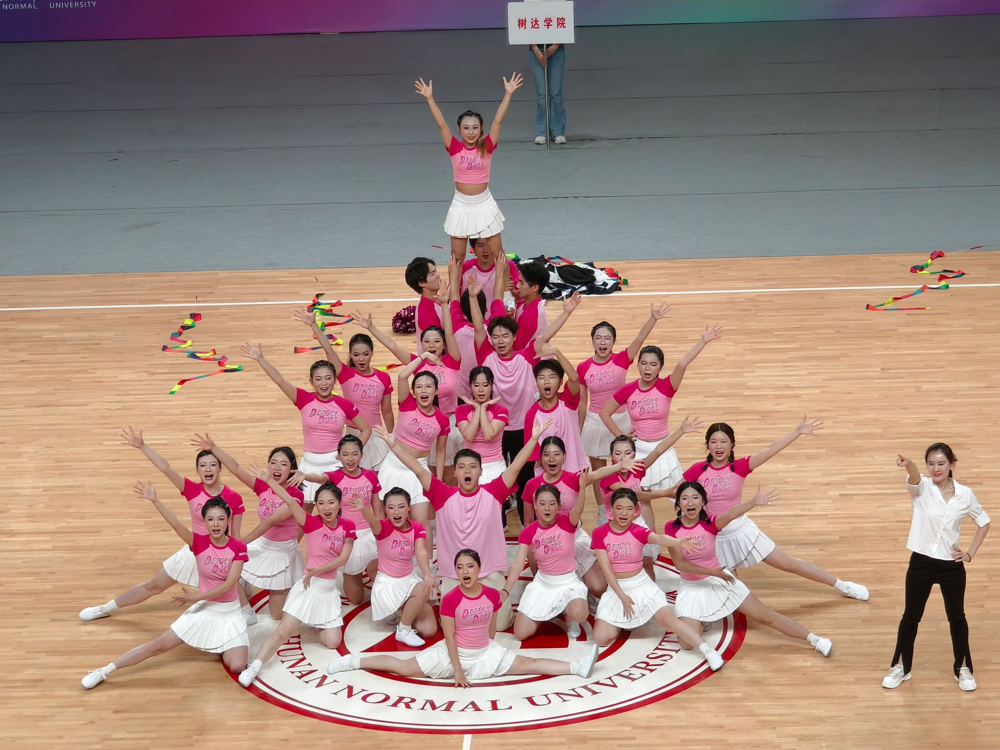 此次比赛共有本科生12支、研究生7支队伍参赛,威廉希尔中文网站平台代表队以“Rock燃动青春”为主题惊艳亮相,队员身着创意服装,动作刚柔并济,跳跃、托举、队形变换一气呵成,与音乐节奏完美契合,彰显了学院学子团结进取的精神风貌。