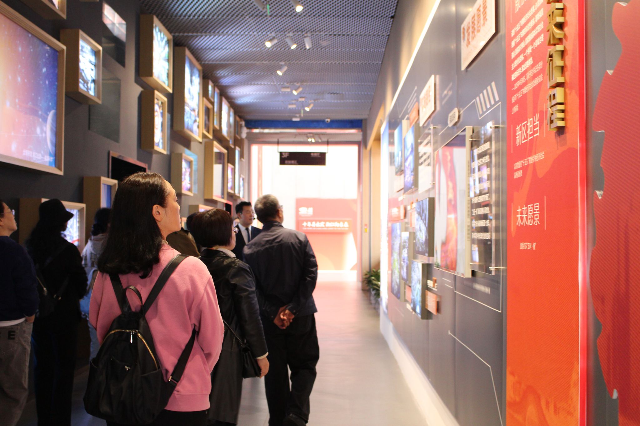 老同志们在讲解员的引导下走进这座现代化展馆。城市馆的建筑外观简约而富有现代感,内部设计则巧妙地将艺术与科技融为一体,分为建设成就展、发展规划展、“未来畅想”展三层,是展示湖南湘江新区发展蓝图的重要平台。老同志们不时驻足交流,对比今昔变迁,感慨时代进步。老同志们纷纷表示,通过此次活动见证了湘江新区砥砺奋进的辉煌成就,大家在感受发展、共享成果中提升了幸福感,更感受到了学院的关怀温暖。