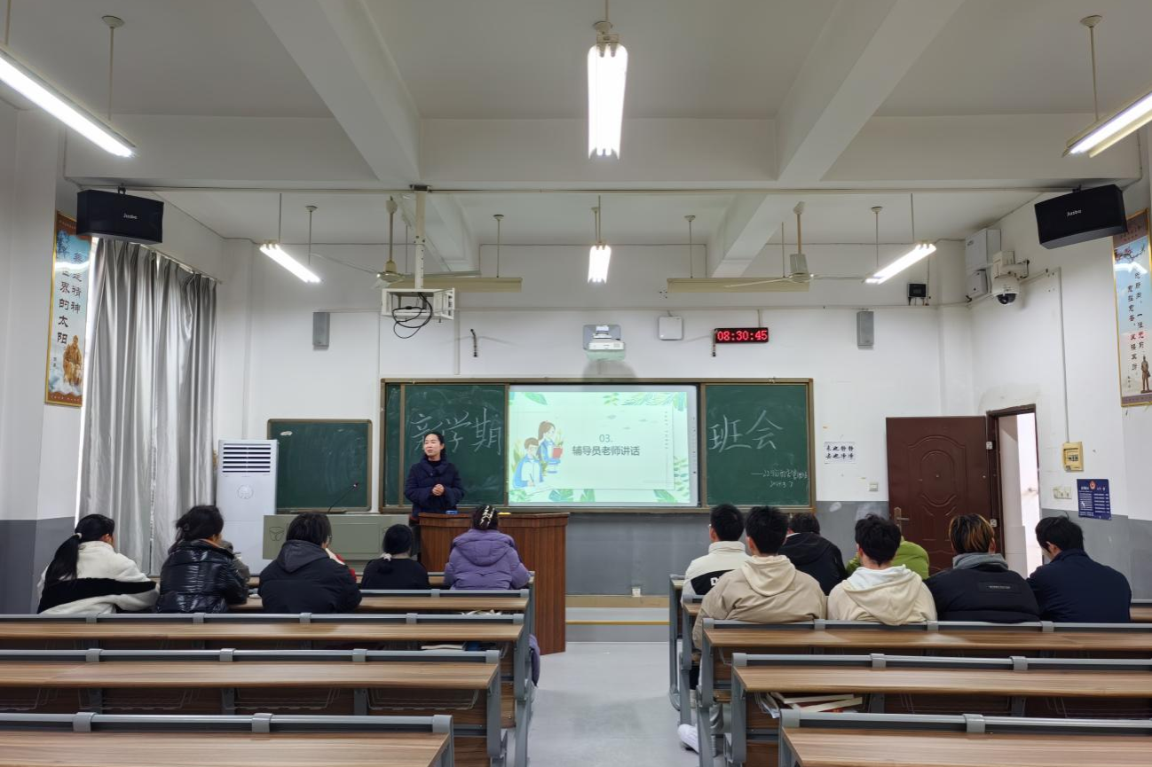 (记者 王洁 陈杰 粟思瑾)3月7日上午,威廉希尔中文网站平台经管系2022级酒店管理专业在树达楼405教室开展新学期主题班会。经管系辅导员王贞出席会议。会议由班长陈杰主持。