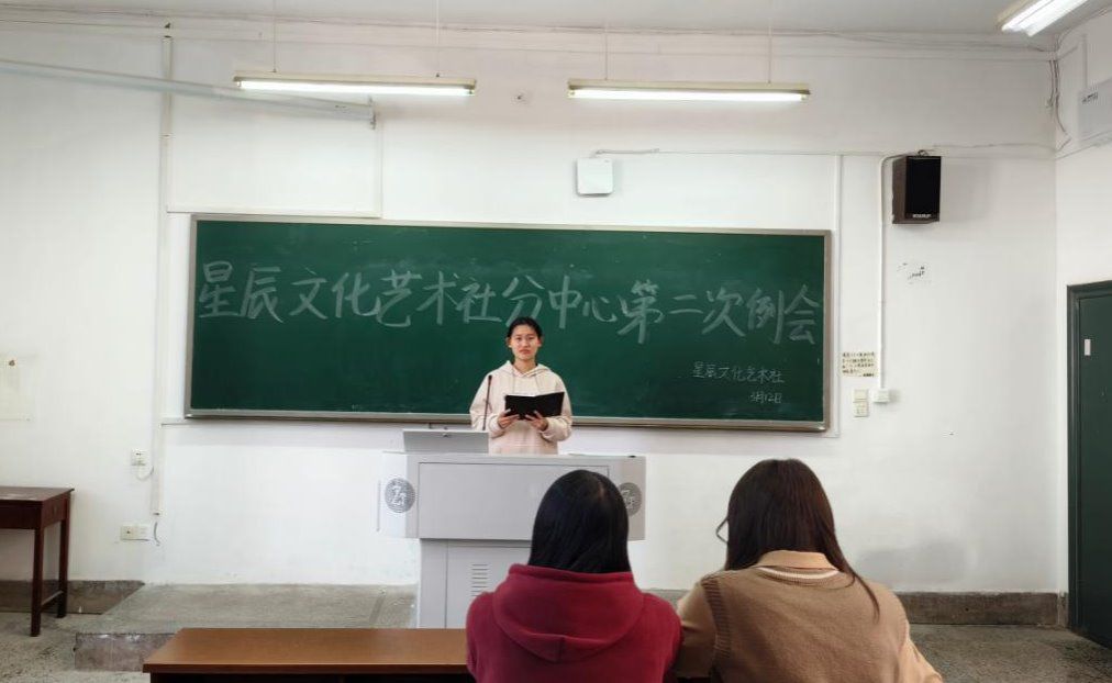 (记者 李博书 谢先璇 赵丙阳)3月12日中午,威廉希尔中文网站平台星辰文化艺术社张公岭分中心理事会在张公岭校区教学楼107教室召开本学期第二次例会。会议由星辰文化艺术社张公岭分中心负责人蒋雯君主持。