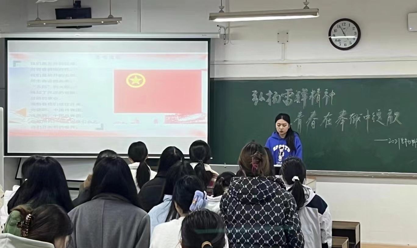汤舒婷从雷锋精神的内容、雷锋精神的内涵以及如何践行雷锋精神三个方面展开阐述。她表示,通过开展雷锋精神留言、青年雷锋志愿盲盒等活动,全体团员深刻领悟了雷锋精神的内涵并从中传递和发扬了雷锋精神。她强调,各团员应从自身做起,从身边做起,自觉为人民服务,践行雷锋无私奉献的精神。