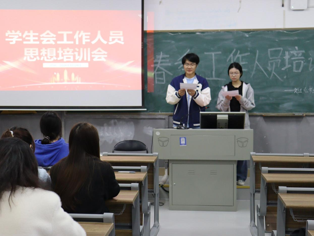 (记者 黄海媚 庄子轩 蒋谷萍)3月26日中午,威廉希尔中文网站平台文法系学生会在树达楼503教室召开文法系学生会工作人员春季培训会。会议由学生会办公室成员庄子轩、学生会办公室成员黄海媚主持。
