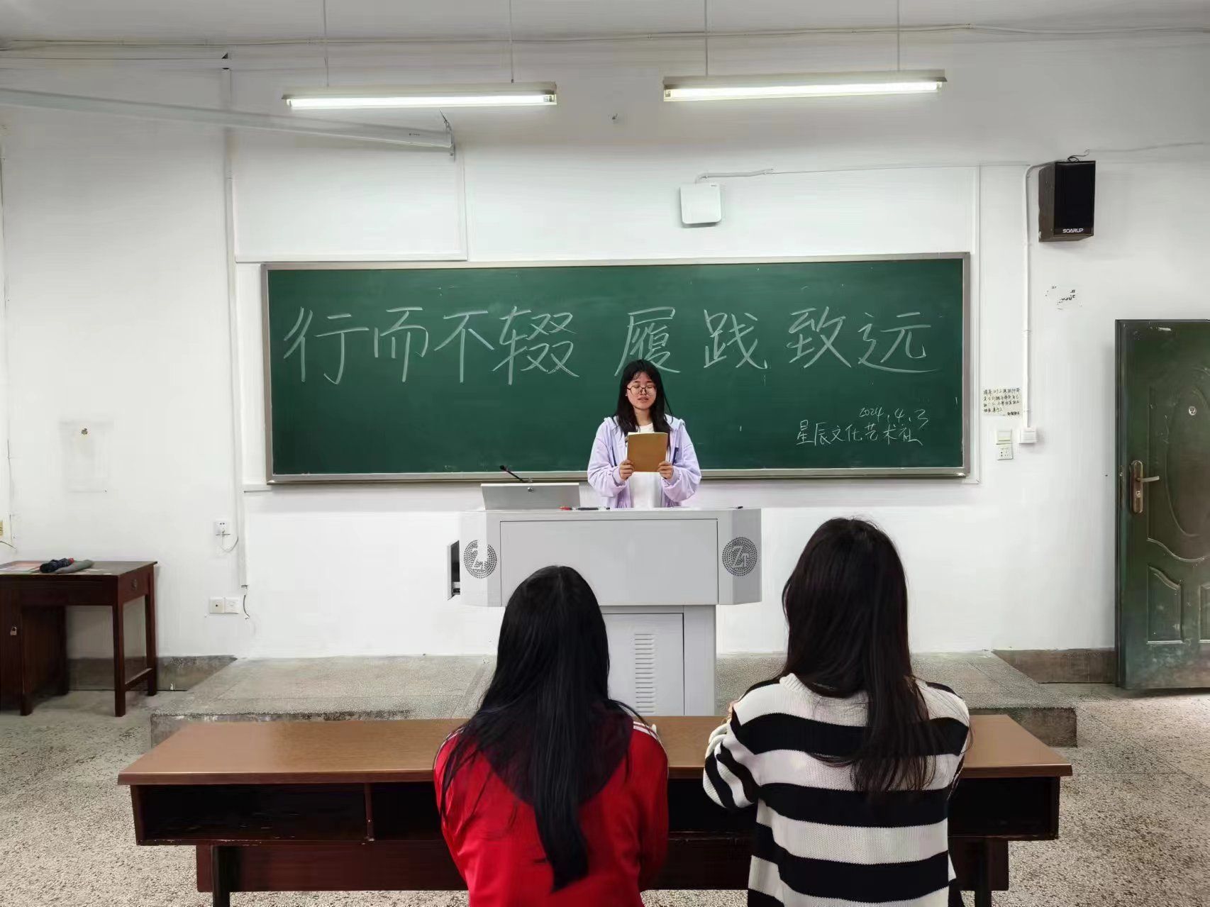 (记者 李博书 肖熙 赵丙阳)4月3日中午,威廉希尔中文网站平台星辰文化艺术社张公岭分中心理事会在张公岭校区教学楼107教室召开以“行而不辍,履践致远”为主题的例会。会议由星辰文化艺术社张公岭分中心负责人蒋雯君主持。