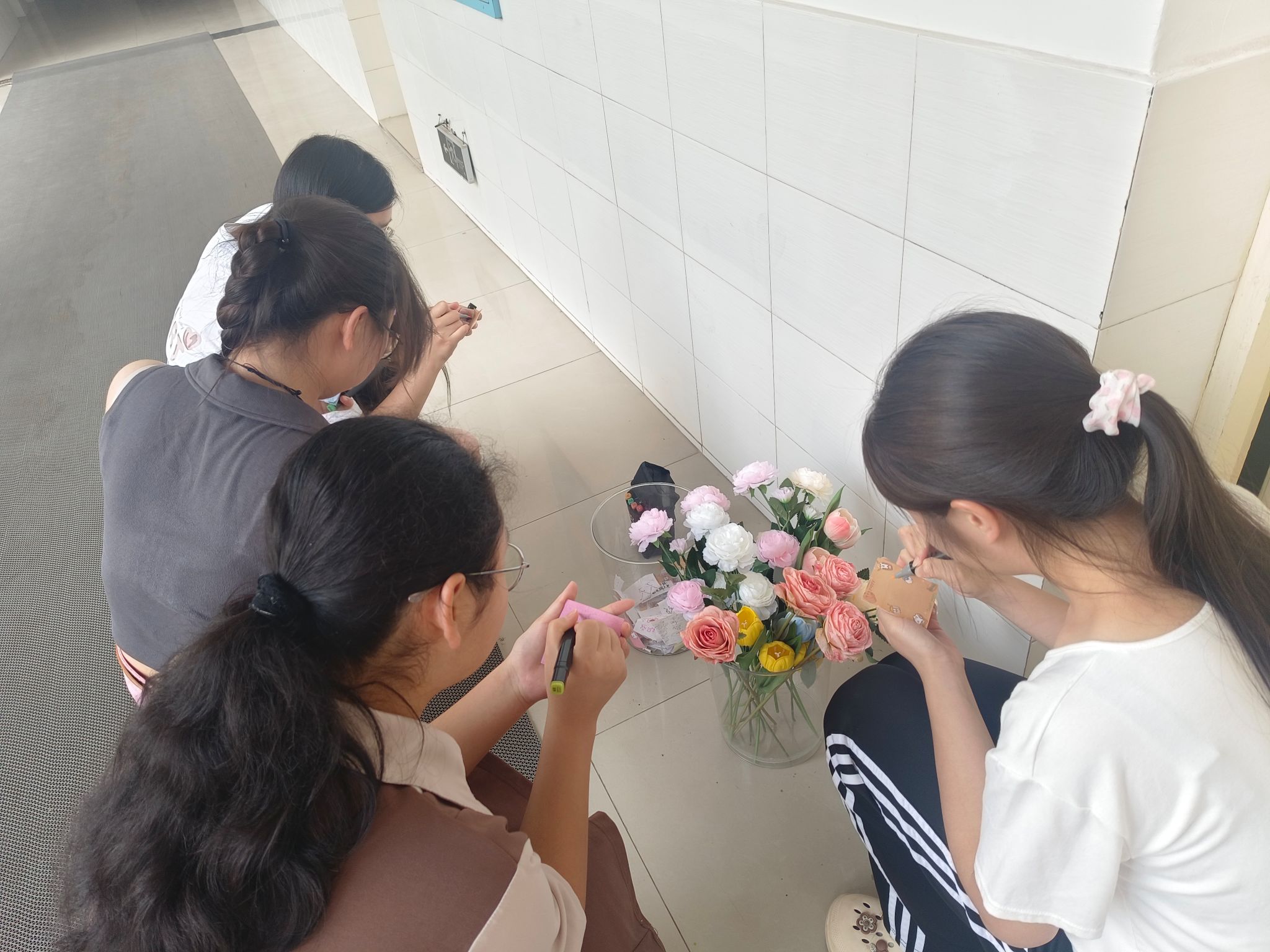 活动现场,志愿者热情引导,同学们通过书写便签,交换闲置物品,换取美丽的花朵。现场欢声笑语不断,洋溢着团结友爱的气息。