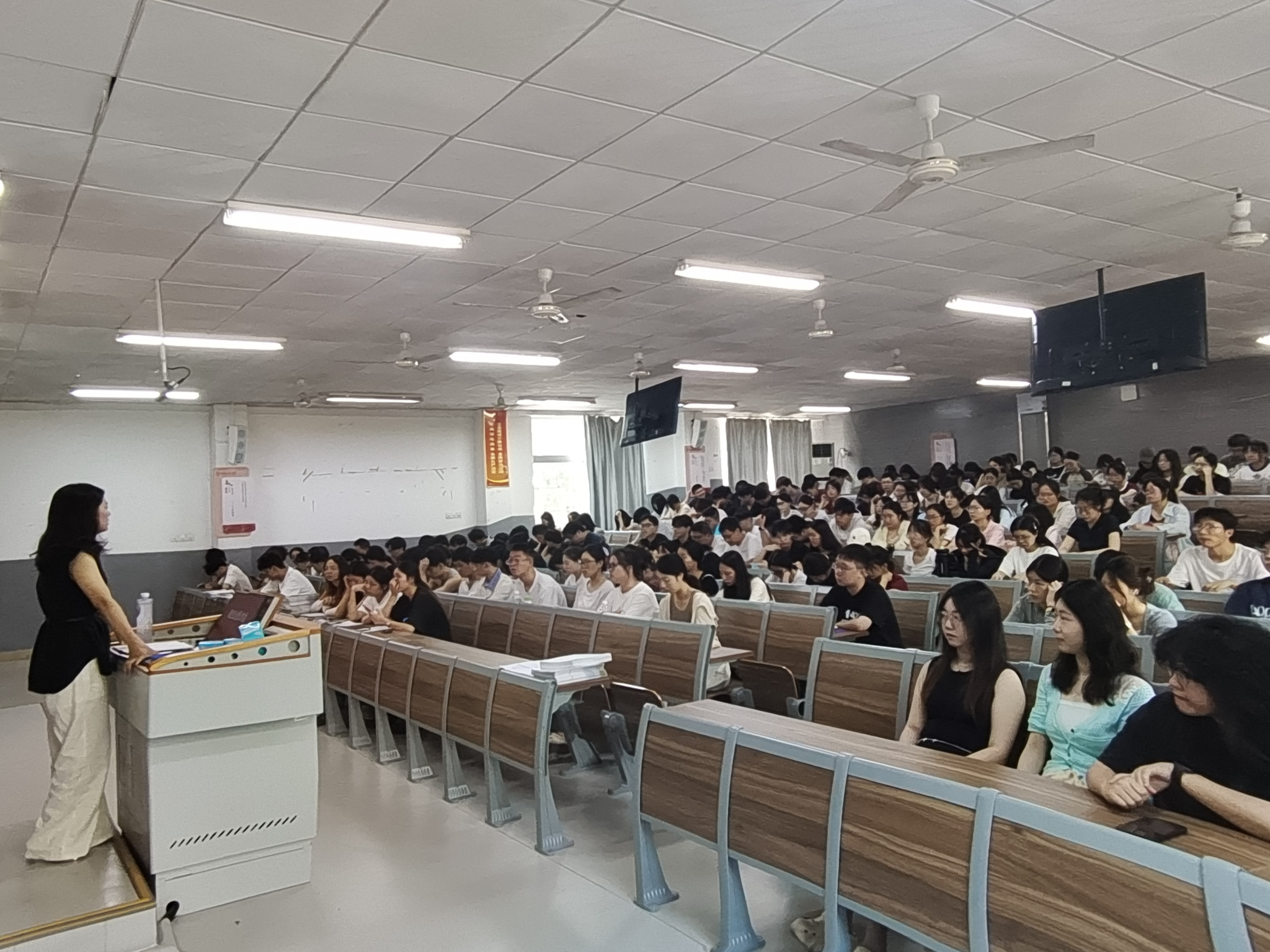 陈蓉向同学们详细介绍大四学年的安排。在就业及升学方面,明确求职创业补贴发放流程、考研考公报考时间节点,并对综测登记表、毕业生登记表、就业推荐表等材料的填写要求以及毕业生整理归档等注意事项进行说明。她指出,大四是一个重要的时间点,同学们要明确目标,做好对未来方向的充分准备,一心一意,朝着目标前进。她强调,同学们要注意登革热等疫情防控,做好登记报备、健康管理,对电动车、学生宿舍等安全问题保持高度警惕,强化安全防范意识。同时,在求职路上,同学们也要提高反诈骗意识,时刻保持警惕,守护好自身权益。