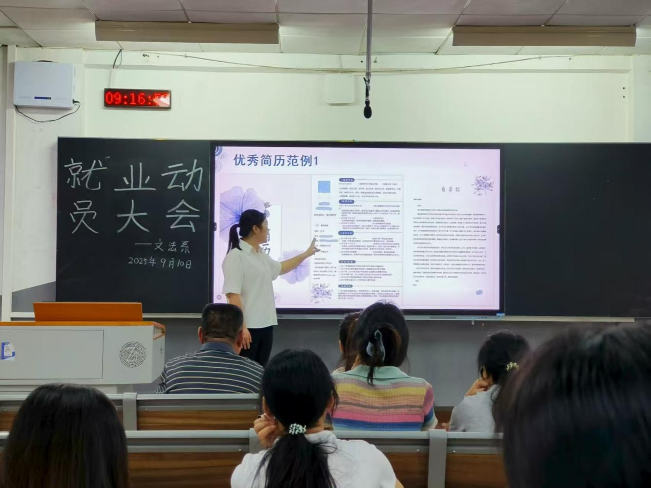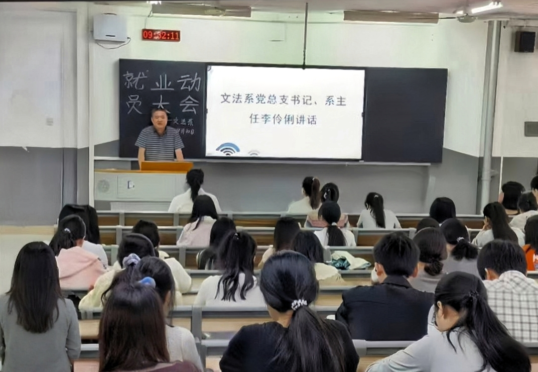 (通讯员 樊依冰 彭琪)9月10日上午,文法系在树达楼515教室召开2026届毕业生就业动员大会。文法系党总支书记、系主任李伶俐,文法系学生第一党支部书记侯祎出席会议。会议由文法系团总支书记彭娇主持。