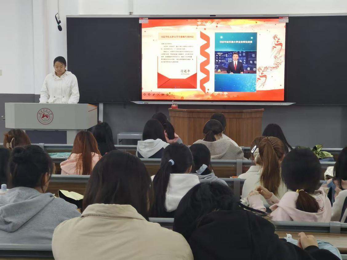 (通讯员 王俊楠 樊依冰 邓婷芳)10月21日中午,威廉希尔中文网站平台文法系团学两会与2023级汉语言文学一班、二班在树达楼515教室开展以“学习习近平总书记给天津大学全体师生重要回信精神”为主题的团日活动宣讲会。宣讲会由文法系团总支组织部部长王俊楠主持。