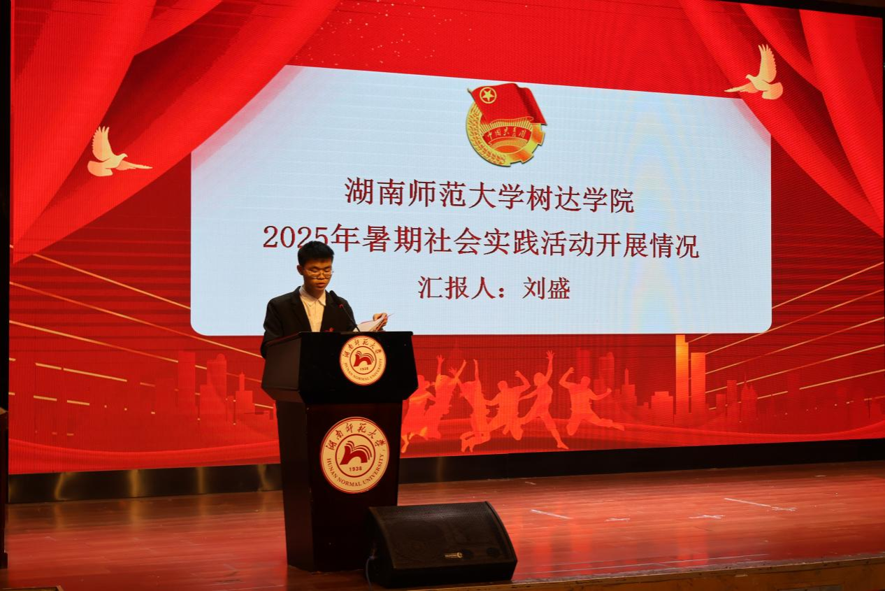 院团委社会实践部部长刘盛汇报学院2025年暑期社会实践活动的开展情况。