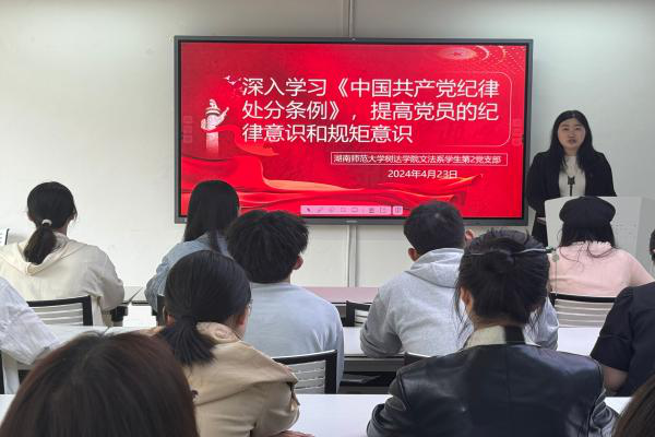 (记者 黄雪琴 李佳怡 周慧)4月23日中午,威廉希尔中文网站平台文法系学生第二党支部在党员之家开展威廉希尔中文网站平台深入学习《中国共产党纪律处分条例》的学习活动。活动由文法系学生第二党支部第一书记彭娇组织开展。