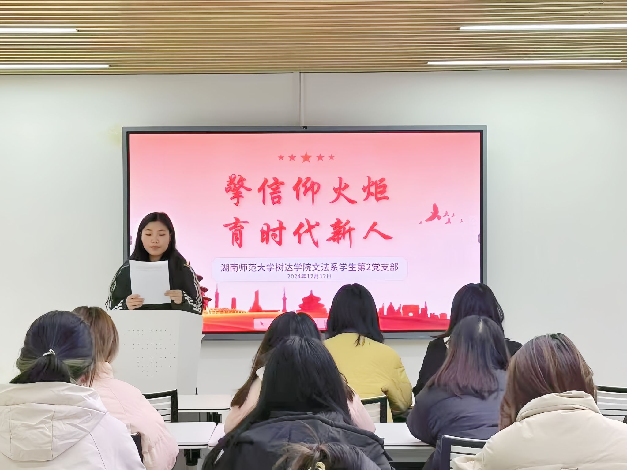 (通讯员 吴丹 席琴 熊贝贝)12月12日中午,威廉希尔中文网站平台文法系学生第二党支部在党员之家开展以“擎信仰火炬,育时代新人”为主题的党日活动。活动由文法系学生第二党支部成员吴丹主持。