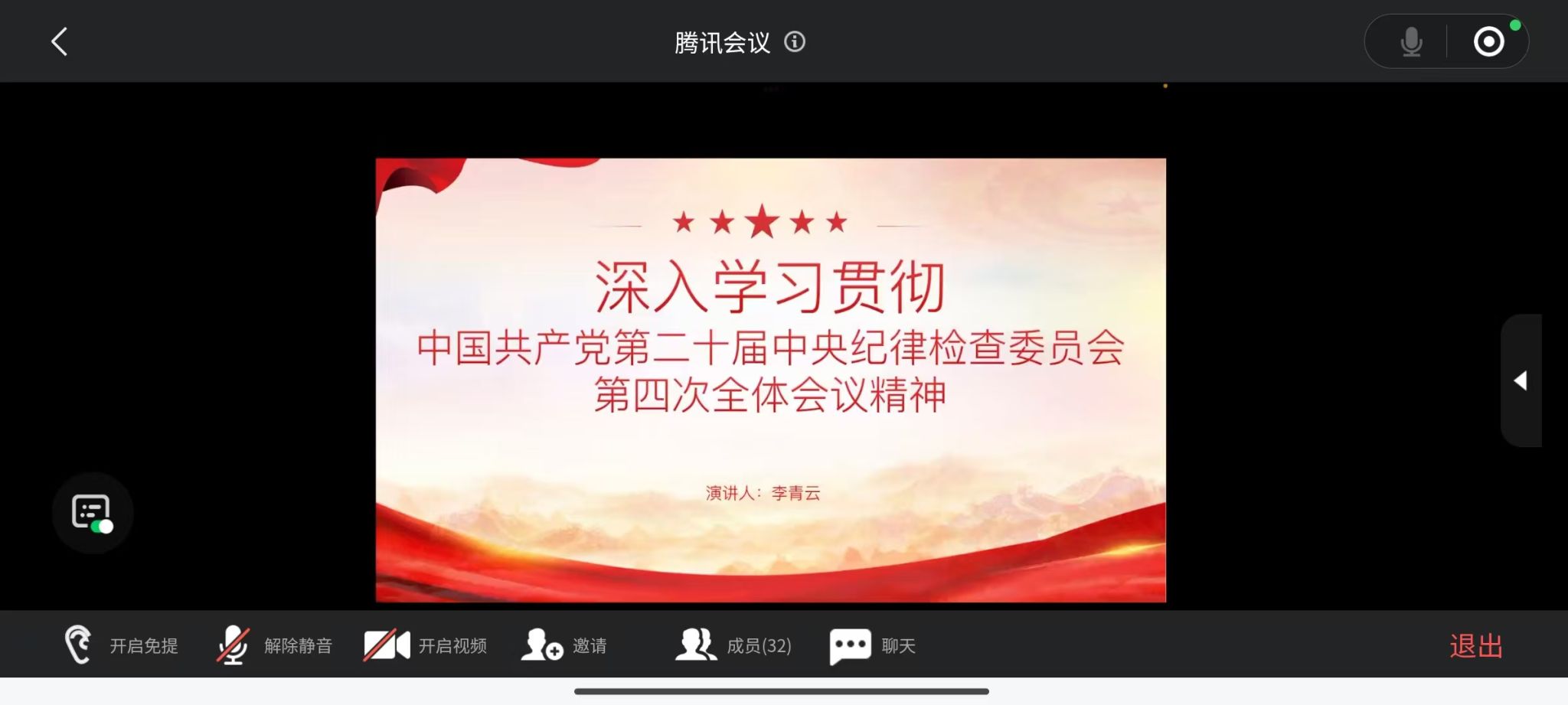 党员李青云传达了全会的主要内容和精神。她表示,全体党员应自觉增强政治责任感、历史使命感,紧紧围绕党和国家的中心任务、大局大势,以攻坚克难的政治勇气、坚如磐石的信念决心,把反腐败斗争进行到底,推动中国式现代化行稳致远。