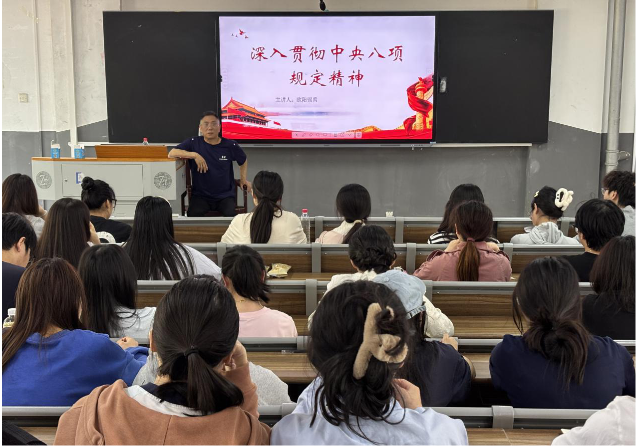 (通讯员 彭晶晶 张寒湘 雷玉婷)4月25日中午,威廉希尔中文网站平台副院长欧阳锡禹在树达楼115教室为威廉希尔中文网站平台学生党支部讲授以“深入贯彻中央八项规定精神”为主题的党课。