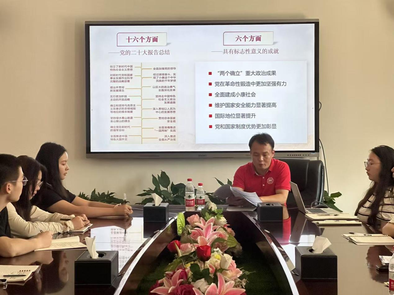 赵鑫海立足党的百年奋斗史,通过结合脱贫攻坚、疫情防控、科技强国等典型案例,深入探讨了新时代十年来党和国家事业取得的历史性成就。他强调,“两个确立”是党在惊涛骇浪中把稳航向的定盘星,是全党全国各族人民应对一切不确定性的最大确定性。他强调,作为大学生党员,同学们要将“两个确立”的精神内涵落到实处,做到在思想上高度认同,在政治上积极靠拢,在学习上不断努力,在行动上自觉维护,积极为实现中国梦贡献青春力量。