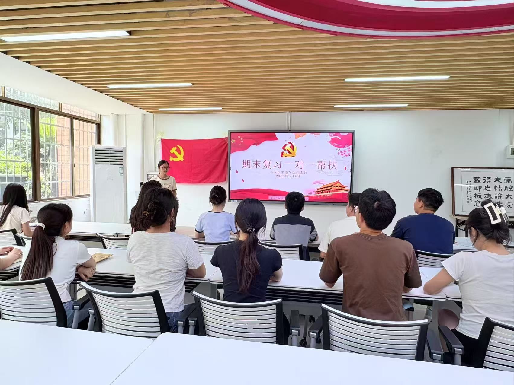 党支部组织支部同志结成“一对一”帮扶对子,互相解决学习难题。学习成绩好的同志带着高度的责任感,既耐心解答专业问题,又分享复习资料和笔记,总结出高效的学习方法和考试技巧,帮助学习有困难的同志查漏补缺、提升效率。