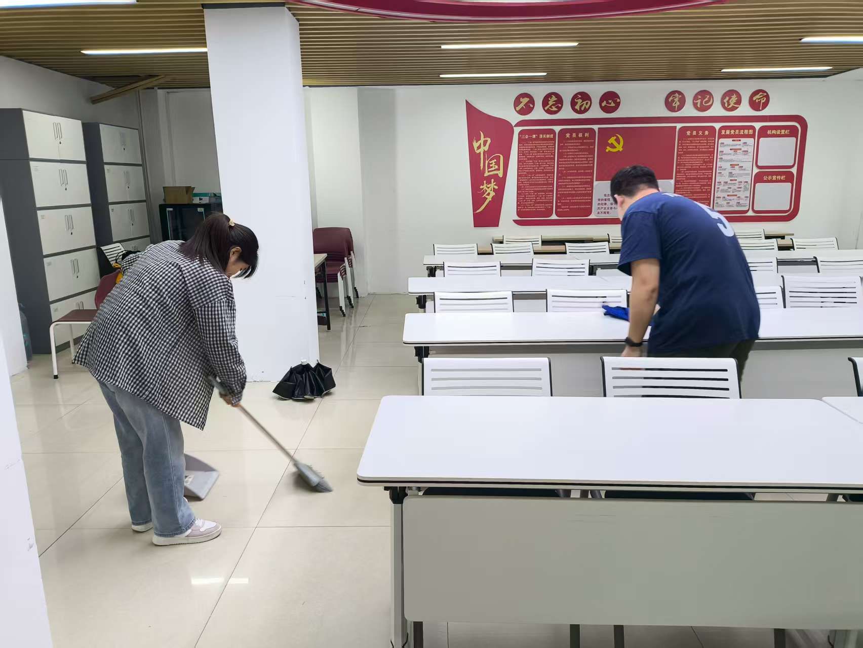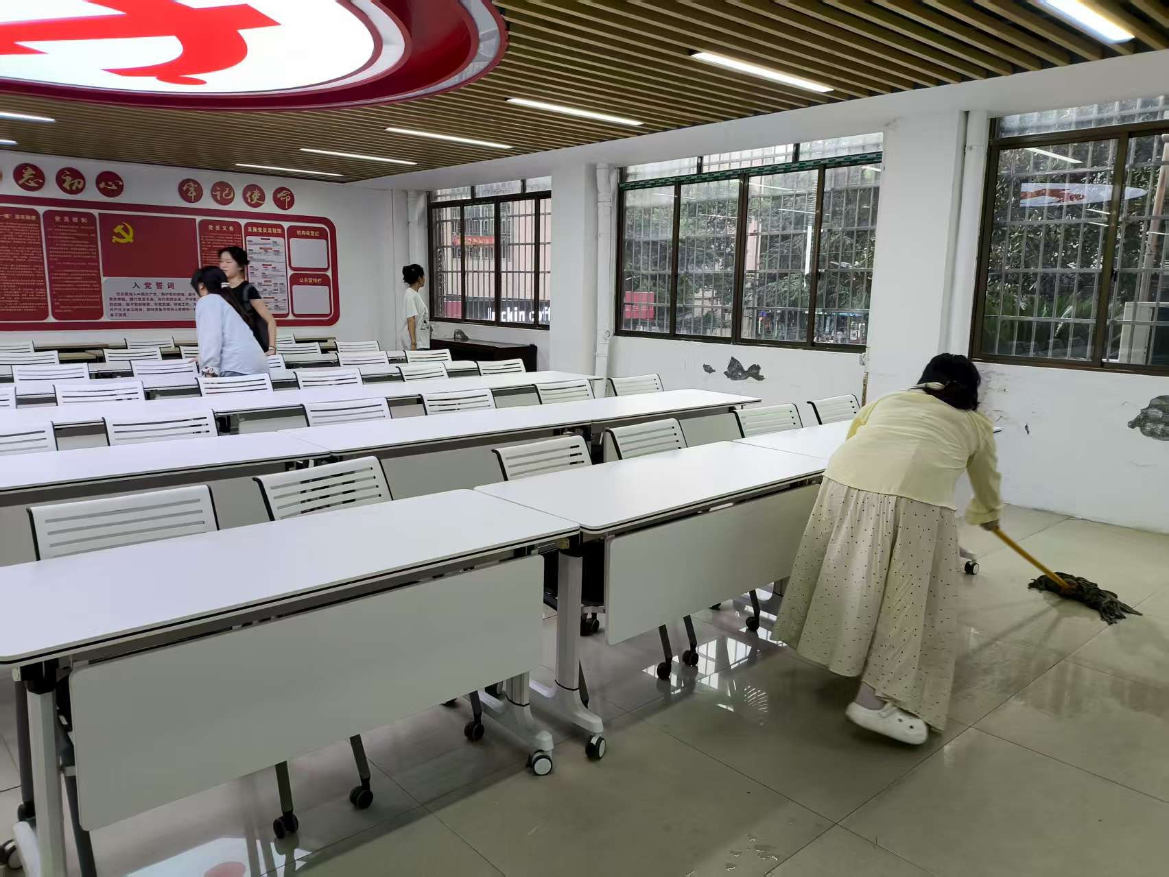 活动过程中,全体预备党员相互协作,积极配合。分工清扫书架、擦拭桌椅、整理图书资料和党务文件、清洁地面死角,并对常用活动设施进行归整和消毒。每位同志在协作中真切体会到“团队协作、共同奋斗”的实际价值,进一步增强了全心全意为人民服务的坚定信念。