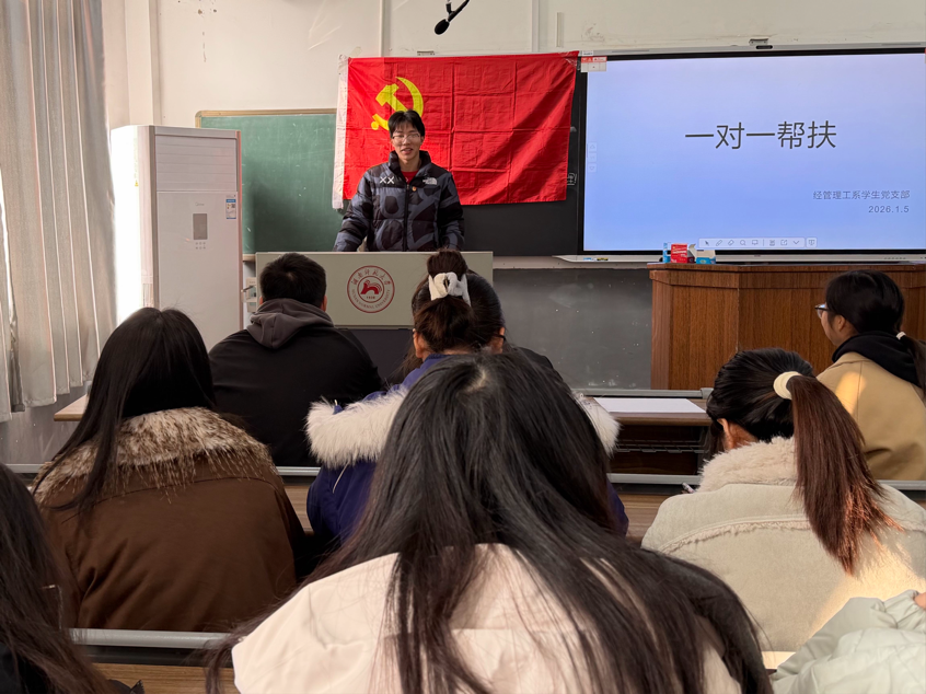 (通讯员 史沁灵 吴雨霏 杨阳)1月5日上午,威廉希尔中文网站平台经管理工系学生党支部在树达楼208开展一对一帮扶活动。活动由经管理工系学生党支部副书记刘开主持。