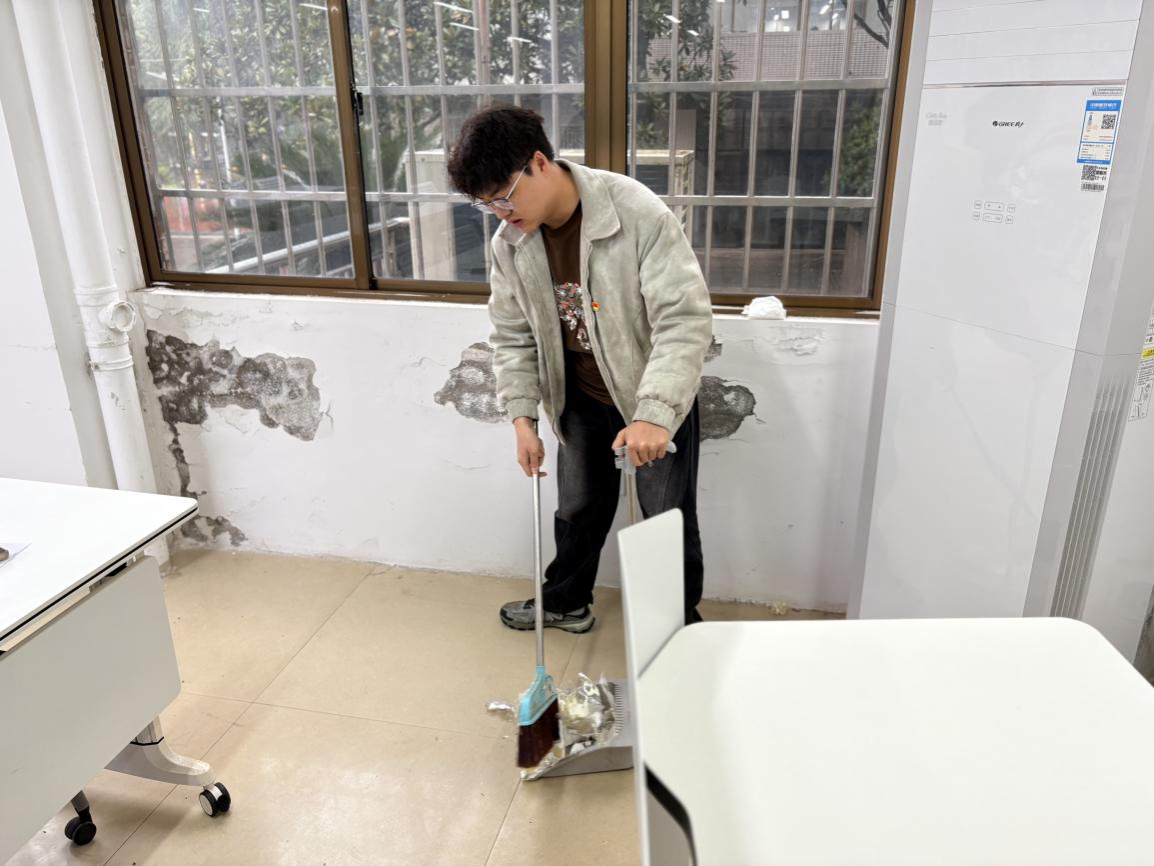 支部成员们分组协作,对“党员之家”进行了全面细致的清洁与维护。从地面的彻底清扫到桌椅的擦拭归位,大家分工明确、配合默契,用实际行动为同学们营造了一个整洁、舒适的学习与交流空间。
